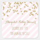 Baby shower thank you favour tag sticker in light pastel blush pink and white stripes pattern with gold colour confetti and handwritten style text. Customisable with your own text. The perfect way to decorate your baby shower favours and thank your guests for being a part of your special day.