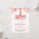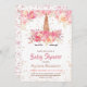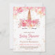 Unicorn Baby Shower Invitation, pink flowers, gold glitter.