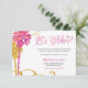 Modern pink watercolor with faux gold glitter tropical Bat Mitzvah reception party insert. Design features palm trees, string lights and swirls. Designs are flat printed illustrations/graphics - NOT ACTUAL GLITTER.