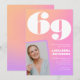 Pink Gradient Retro Photo 69th birthday Invitation