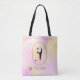 Modern yellow and Pink gradient ombre with stars, geometric shapes and yoga pose silhouette Yoga instructor studio teacher tote bag. Add your logo.