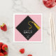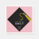 Creative graduation party napkins featuring black and gold grad cap on pink background. To personalise edit text to add name and senior class year.