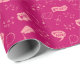 Fun and quirky wrapping paper featuring hand drawn illustration of graduation and school related motifs in pink.