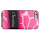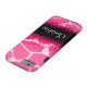 Bright bold animal patterned case in black and pink hues. Personalise this item with your first name. This example currently reads: Christine. This original pattern by Sarah Trett, is based on the patterning found on a giraffe with a halftone moiré dot gain pattern overlay.