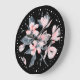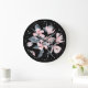 Pink & Gray Floral Watercolor Pattern Large Clock