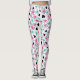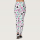 These cute leggings have a pattern of modern heart images in tones of pink, mint green, and black. The pattern is printed on a white background. Perfect for Valentine's Day, but appropriate for all year long.