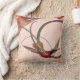 Stylish throw pillow features an artistic design in a pink and green colour palette with muted complimentary maroon and grey accents. An artistic design with a beautiful hummingbird as the focal point with muted red and green accents on a modern pink background with abstract elements and geometric circle composition with hints of gold. This elegant design is built on combinations of repeated circles and brushstrokes, all interlaced to form a simple elegant artistic design. The stunning hummingbird in stylish muted shades of red and green compliments the bright lighter background.