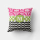 Show off your personal style in a fun way with this hot pink and black damask and chevron print monogram pillow.