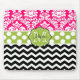 Show off your personal style in a fun way with this pink green and black dot damask personalised mouse pad.