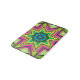 A green, pink, and blue abstract with stars, hexagons, and lines