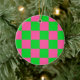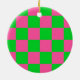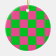 Pink Green Chequered Check Pattern Ceramic Tree Decoration