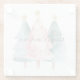 Pink Green Christmas Trees Gold Stars Glass Coaster