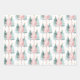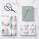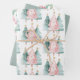 Pink Green Christmas Trees Gold Stars Wrapping Paper Sheet