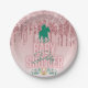 Pink|Green Elegant Glitter Drip Derby Baby Shower Paper Plate
