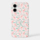 Preppy and Pretty Pink and green flamingo tropical birds iPhone case. Monogram it with one initial. Available in all current iPhone case sizes.