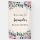 Bridal shower banner with a pretty floral design made with watercolors. Pink, purple and green garden flowers.