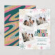 Pink Green Gold Merry & Bright Retro Swirl 3 Photo Holiday Card