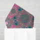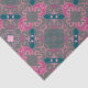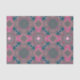 Colourful tissue paper design featuring elegant swirly ornaments in shades of pink and green on a dark grey background.
