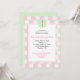 The baptism invitation is perfect for a baby girl. Featuring pretty pink & white dots with a pink cross in a circle at the top. The middle has a white area to add plenty of text. The back is a soft green colour to match the invitation.