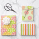 PINK GREEN ORANGE YELLOW FRUIT & STRIPES WRAPPING PAPER SHEET