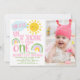 Pink Green Our Little Ray Of Sunshine 1st Birthday Invitation