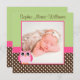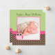 Pink Green Owl Photo Birth Announcement