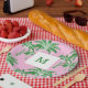 Pink Green Palm Tree Preppy Summer Beach Monogram Paper Plate