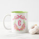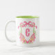 Pink & Green Pickleball Paddles Monogram Crest Two-Tone Coffee Mug