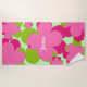 Beach towel Popflower motif bright pink, aniseed green on pale green background with your first name. Editable text.