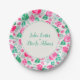 Pink Green Rose Petals Flowers Garden Wedding Paper Plate