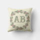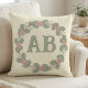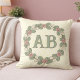 Add charm to any space with this pastel yellow throw pillow that has a faint cross pattern, a floral wreath of pink roses and green leaves, and your personalized initials at the center. Elegant, girly, and totally custom. Perfect for home décor or gifting.