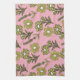 Chic pink and green flower pattern kitchen towel featuring stylish tropical blooms, whimsical botanical motifs, and retro spring summer charm for a fresh nature-inspired accent.