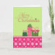 This christmas folded greeting card has a pink and green colour scheme. There are three presents on the bottom with a hot pink snowflakes border on the front cover. You can easily customise the greeting and your family name on the inside. Artwork by Kelly Medina