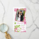 You can personalise the text and wedding photo on this cheerful and pretty pink, green, and white floral wedding thank you photo card. These photo cards are nice because you can write your hand written messages on the back, leaving a pretty photo keepsake for your wedding guests. To change the photo and the text, use the personalise options. For more extensive changes to the card, including changing the font, font colour, font size, picture size, or text/picture placement, use the customise it option. This is a pretty and elegant wedding photo thank you card for a spring or summer wedding. Really, you can use this as a photo thank you card for a variety of special occasions, such as a special anniversary or birthday.
