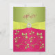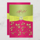 This pink, yellow, and green monogrammed wedding invitation has a PRINTED ON yellow ribbon and bow with a PRINTED gemstone and diamonds jewel brooch on it. The text is all customisable. The paper type is also customisable. If you require any other items in this design, please email me with your request to niteowlstudio@gmail.com.