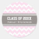 Pink Grey Chevrons Graduation Custom Name Classic Round Sticker