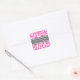 Baby shower thank you favour tag sticker in elegant bright fuchsia pink, grey and white classic floral damask pattern. Customisable with your own text, contact us for a colour change. The perfect way to decorate your baby shower favours and thank your guests for being a part of your special day.