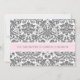 Bridal luncheon invitations in elegant light blush pink, charcoal grey and white classic vintage floral damask pattern, chic and feminine, customisable with your shower details. Also available in thank you cards and invitations for the bridal party.