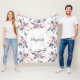 Pink & Grey Floral Watercolor Pattern Monogram Fleece Blanket