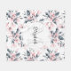 A personalised blanket with an elegant pattern made with a watercolor illustration of pink flowers with blue-grey leaves and stems.