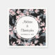 Wedding napkins with an elegant pattern made with a watercolor illustration of pink flowers with blue-grey leaves and stems. Elegant black background.