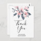 Pink & Grey Flowers Classy Watercolor Thank You Postcard
