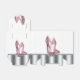 Beautiful black and pink glitter high heel shoe party favour boxes. These elegant pink glitter high heel shoe favour boxes can be customised with text and you can change the background colour and bow colour.