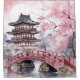 Pink Grey Japanese Sakura Blossoms Pagoda Shower Curtain