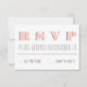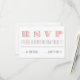 Pink, grey modern typography, wedding RSVP response/reply card featuring the RSVP text in big capital letters in pink and grey. This trendy customisable template design is perfect for a casual and informal wedding. For best results click on “Customise it” or contact us to adjust the names on the card.