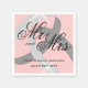 Chic Mr and Mrs paper wedding napkins with golden rings. Elegant black script typography design for classy wedding party. Stylish handwritten calligraphy grey text. Customisable colours personalised with name of bride and groom. Cute entwined silver wedding rings. Pink and grey colour combination.
