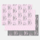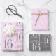 Pink and Grey birthday gift wrapping paper with editable age number and personalised name plus a diagonal stripe accent sheet for an elegant and bold birthday present display.