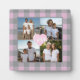 Cherish your memories with this elegant personalised pink grey plaid 4 photo plaque! with heart and love!