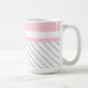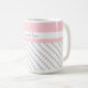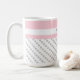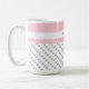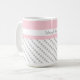 Cute personalised coffee mug in trendy tones of pink and grey. Scattering of grey polka dots on white, with a soft pink banner across the top. Personalise with any name or saying. Perfect for gift giving, or make one for yourself! Coffee mugs are available in a variety of styles and sizes.