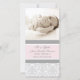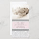 New baby girl birth announcement custom photo cards in adorable and elegant light pastel blush pink , grey and white classic floral damask pattern, fully customisable with your baby's photo and birth details, a great way to share the happy news of the birth of your daughter with friends and family.